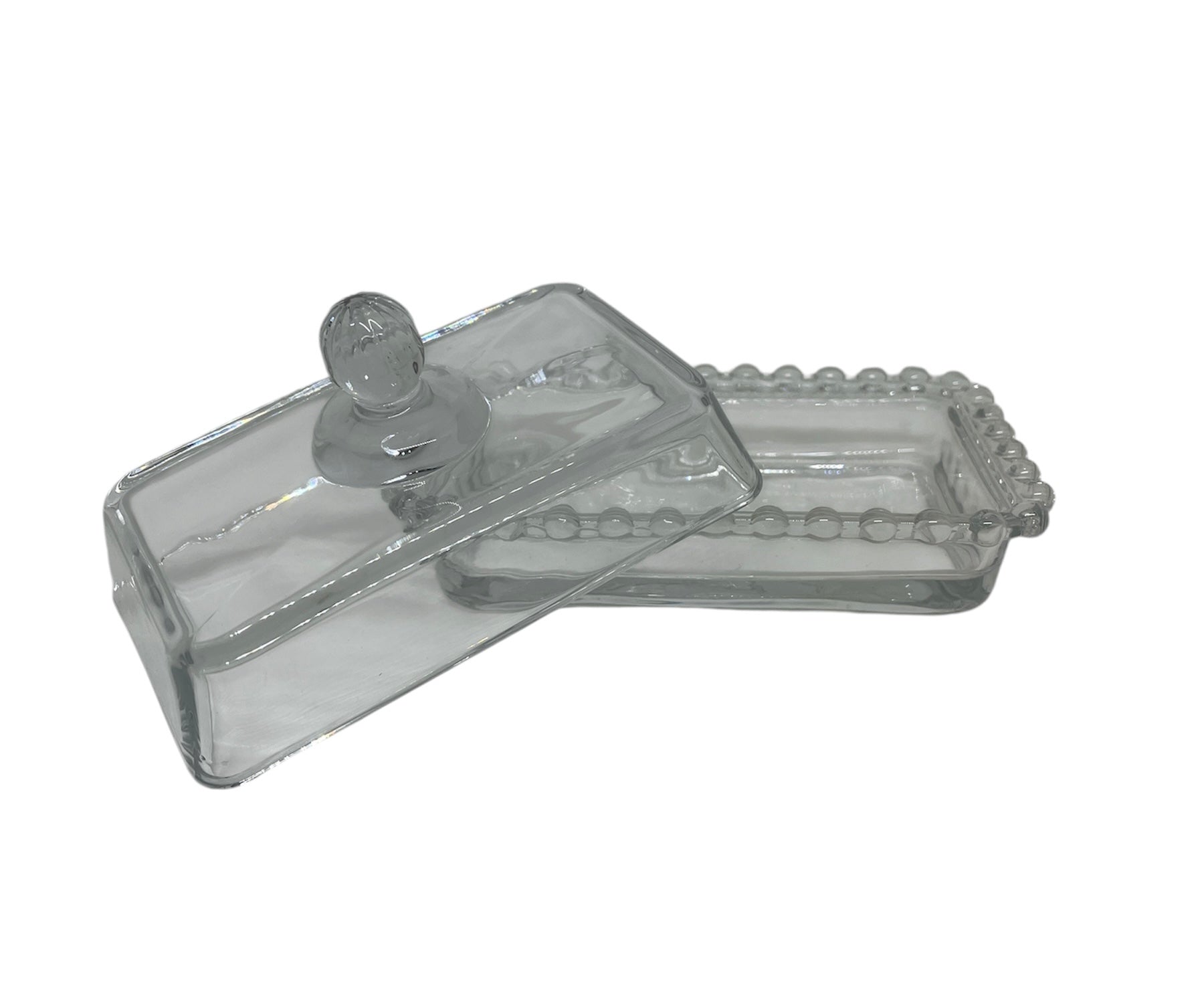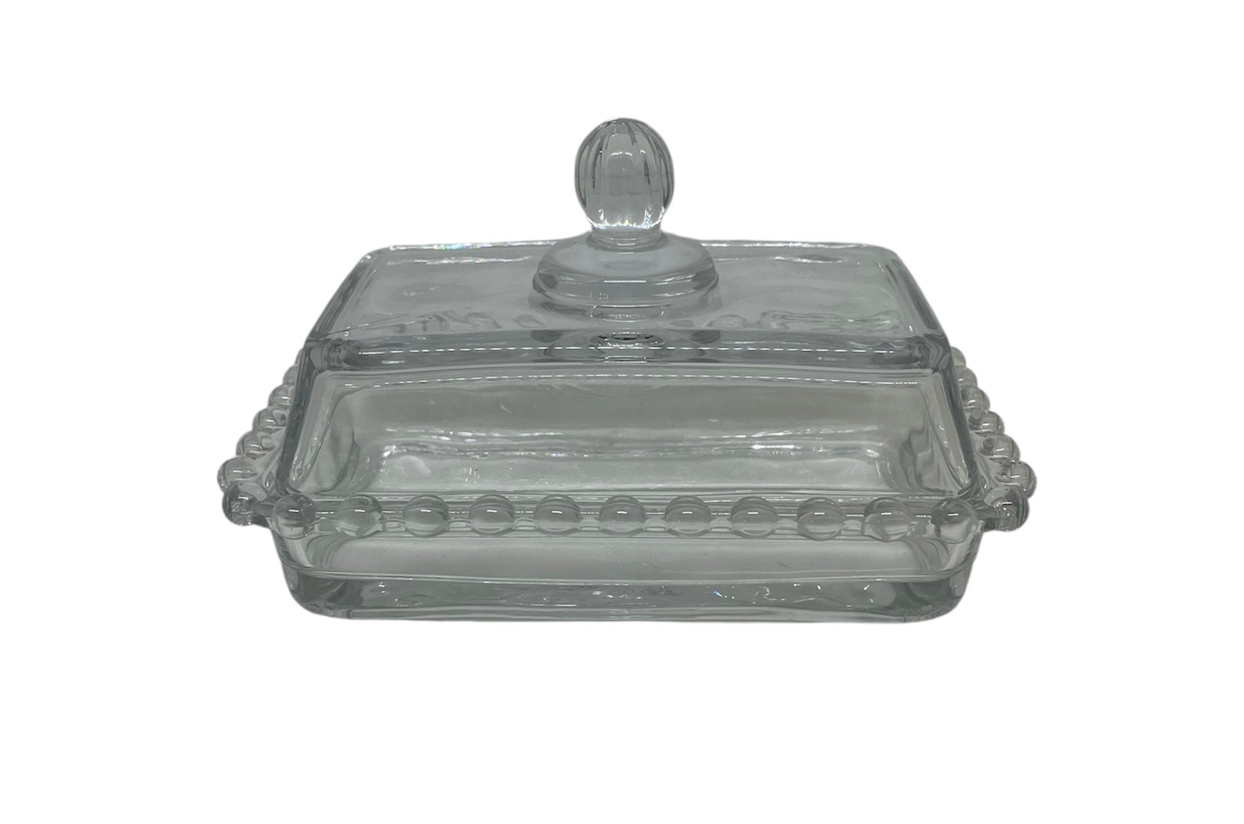 MANTEQUILLERA DE VIDRIO BORDES CON BOLITAS