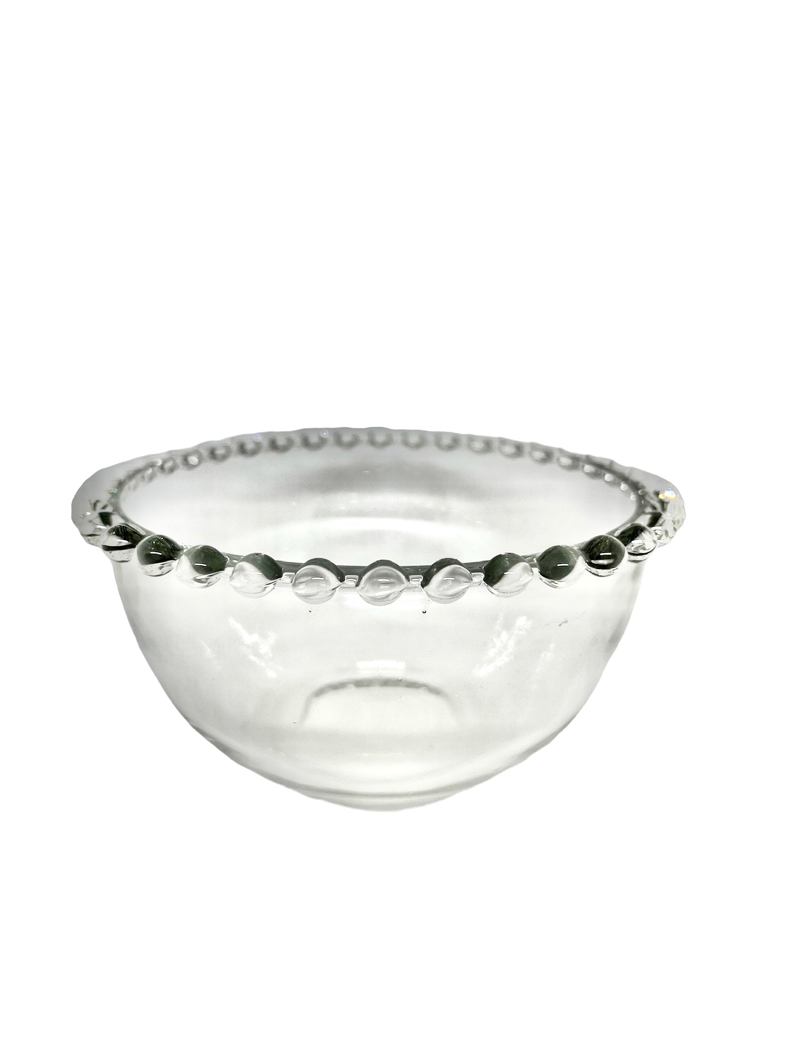 POCILLO DE VIDRIO CON BORDE BOLITAS